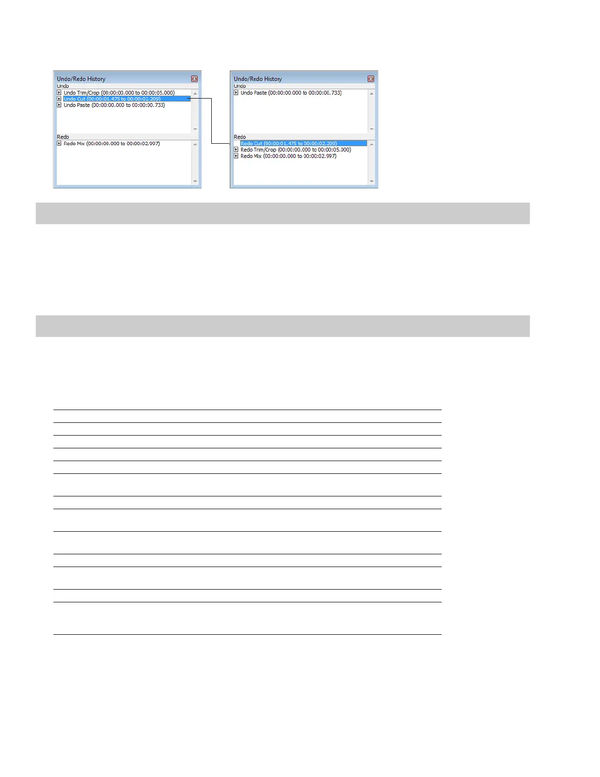 Double-click the Cut operation in the Undo pane. The Cut and Trim/Crop operations are both undone in the waveform and moved