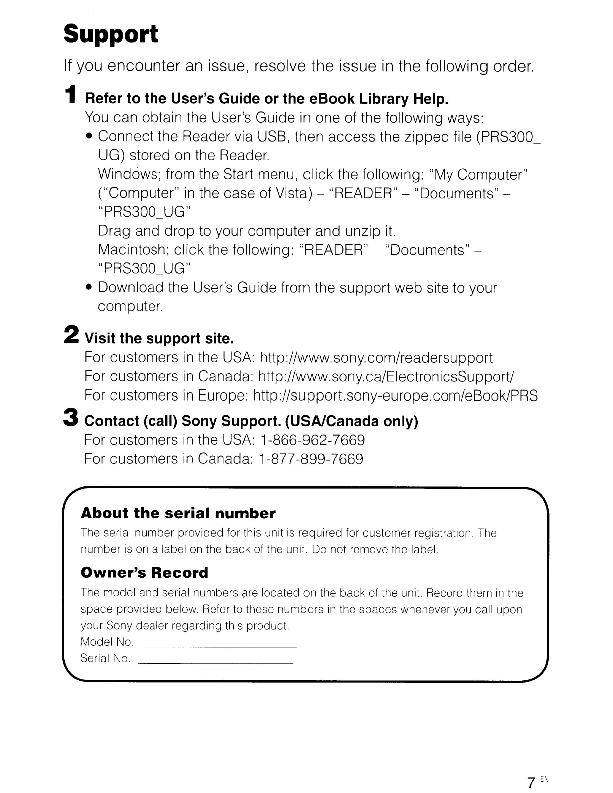 the USA: http://www.sony.com/readersupport