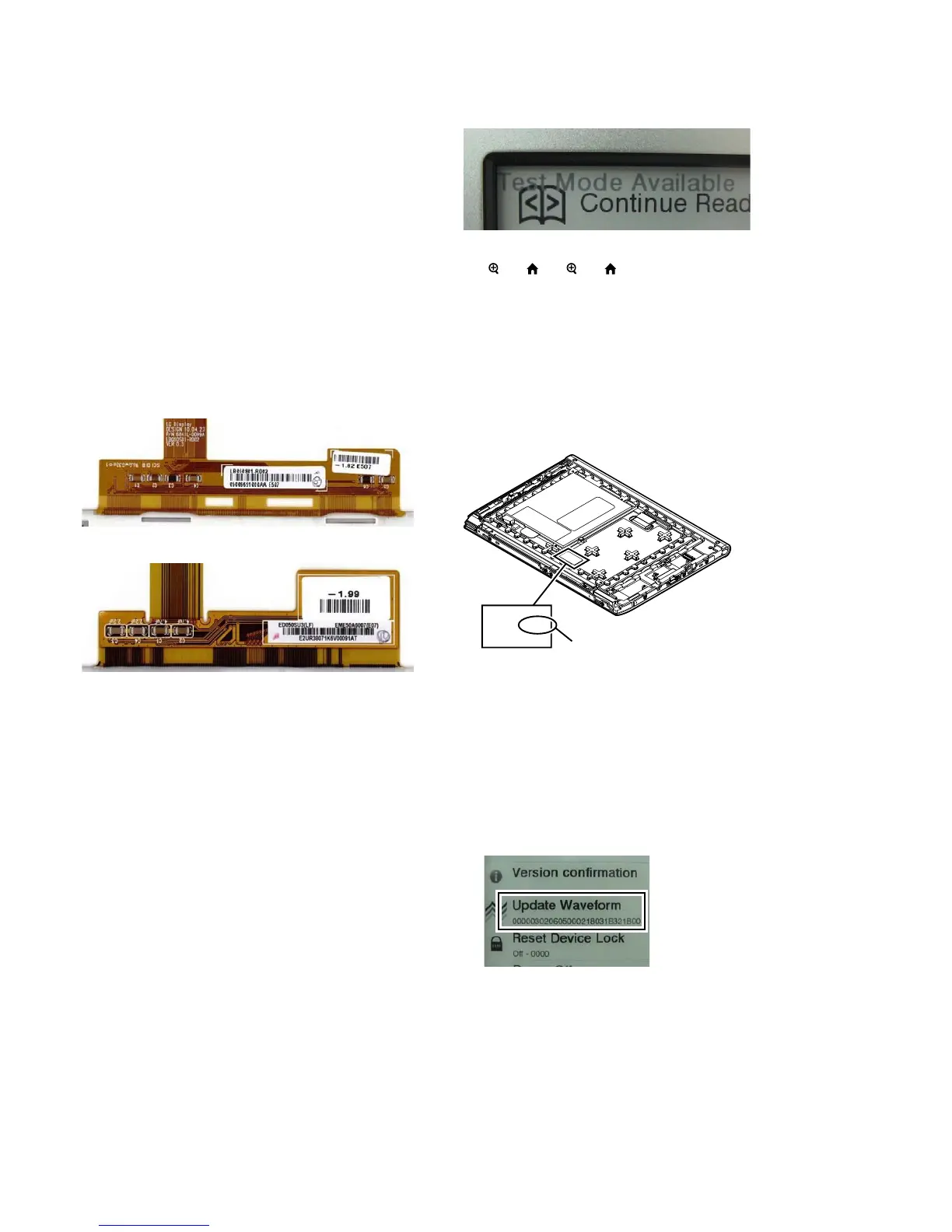 6. Touch the “Update Waveform” in the test mode menu page 1,
