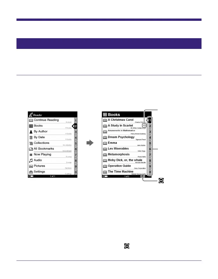 In the Home menu, press / to select “Books,”
