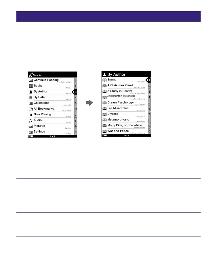 In the Home menu, press / to select “By Author”
