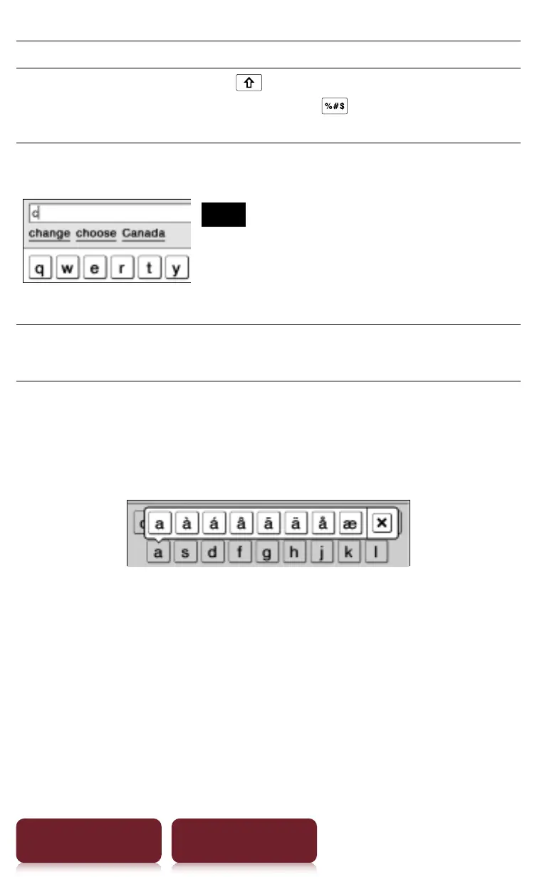 Tap and hold an applicable character key will pop up