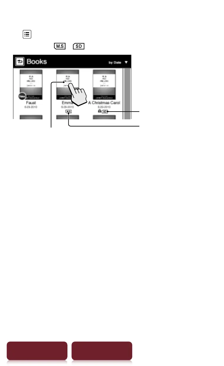 Tap [Books] at [Home] menu to view a book list, Tap