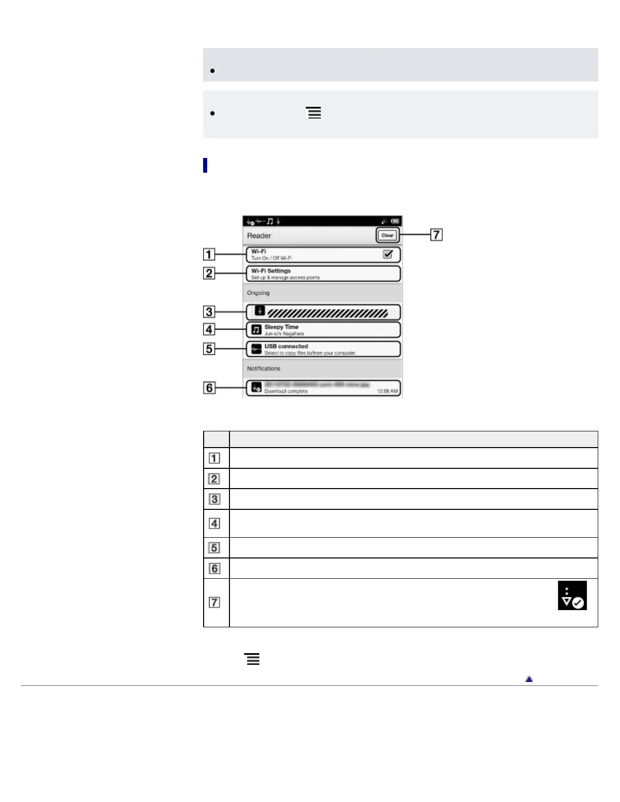 Depending on the status of the Reader, other items may also appear in the notification window.