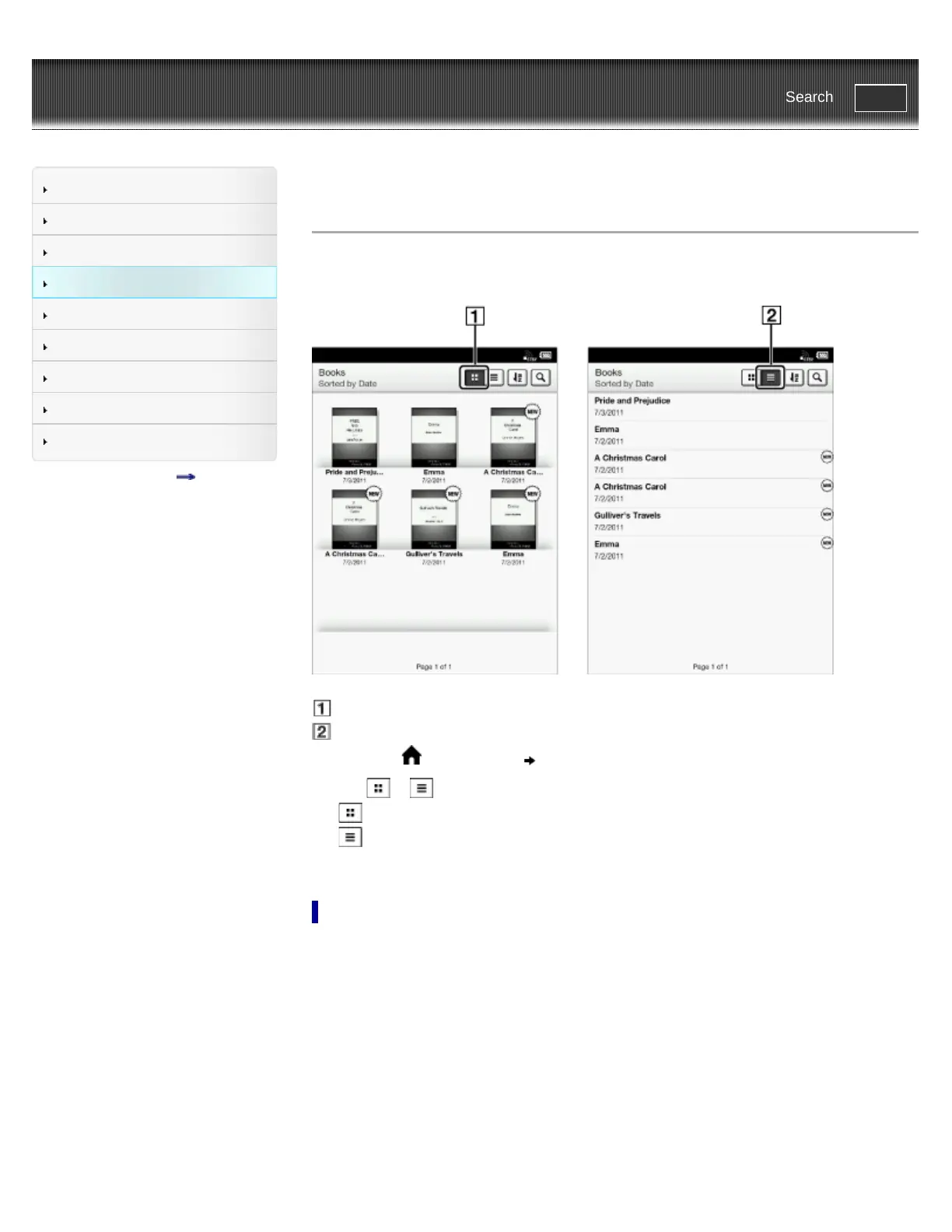 Top page > Browsing Content Lists > Content Lists > Browsing in Thumbnail View and List View