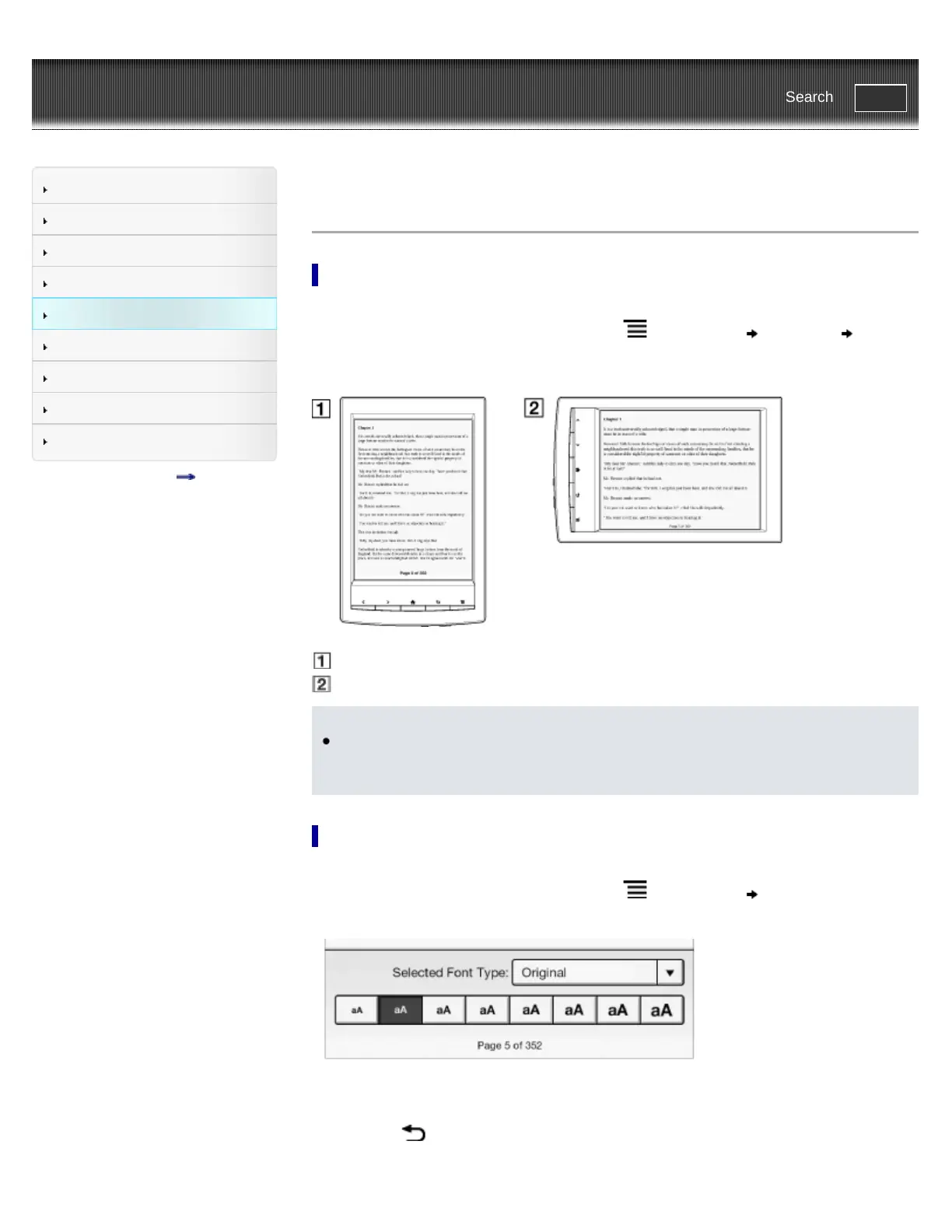 1. When viewing a book or periodical, press the (Menu) button tap [Font].