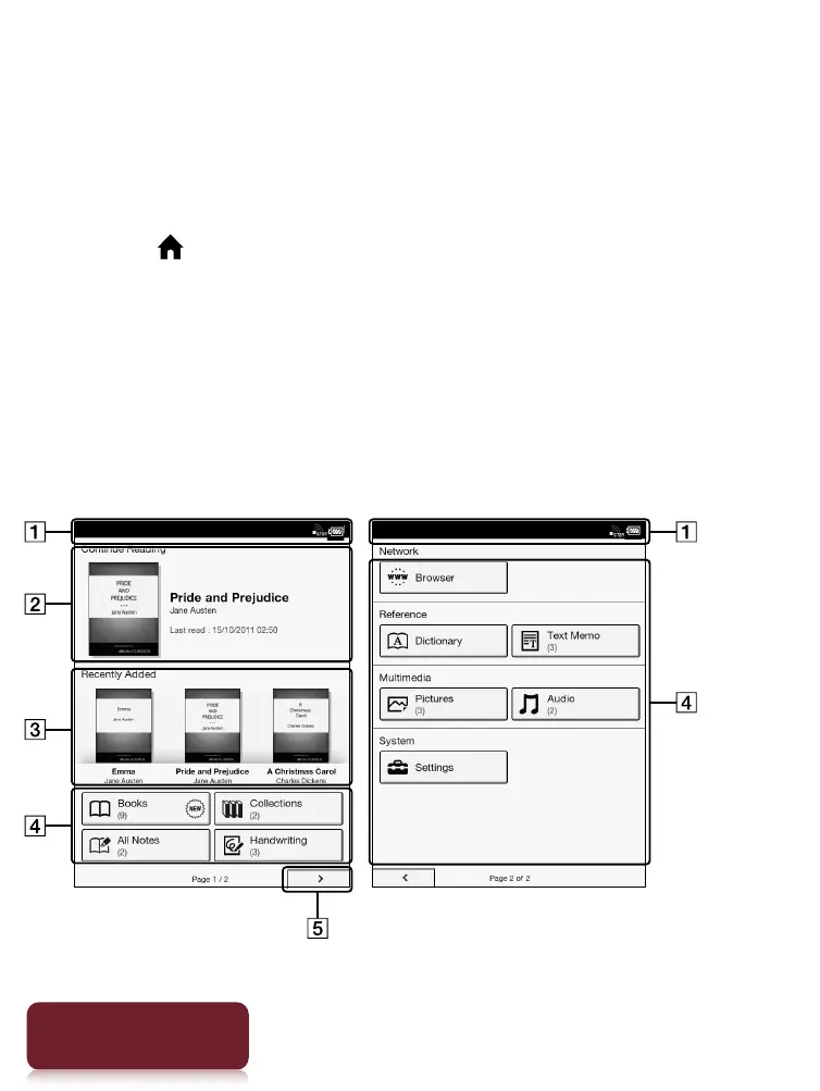 Sony PRS-T1 - Basic Operations; [Home] Screen