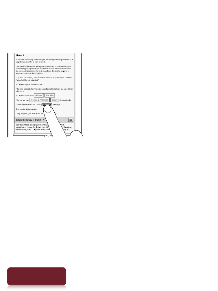 Tap and hold your finger to select a word and display a