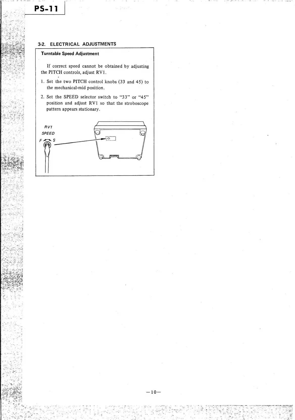 Sony PS-11 - Section 3-2: Electrical Adjustments; Turntable Speed Electrical Adjustment
