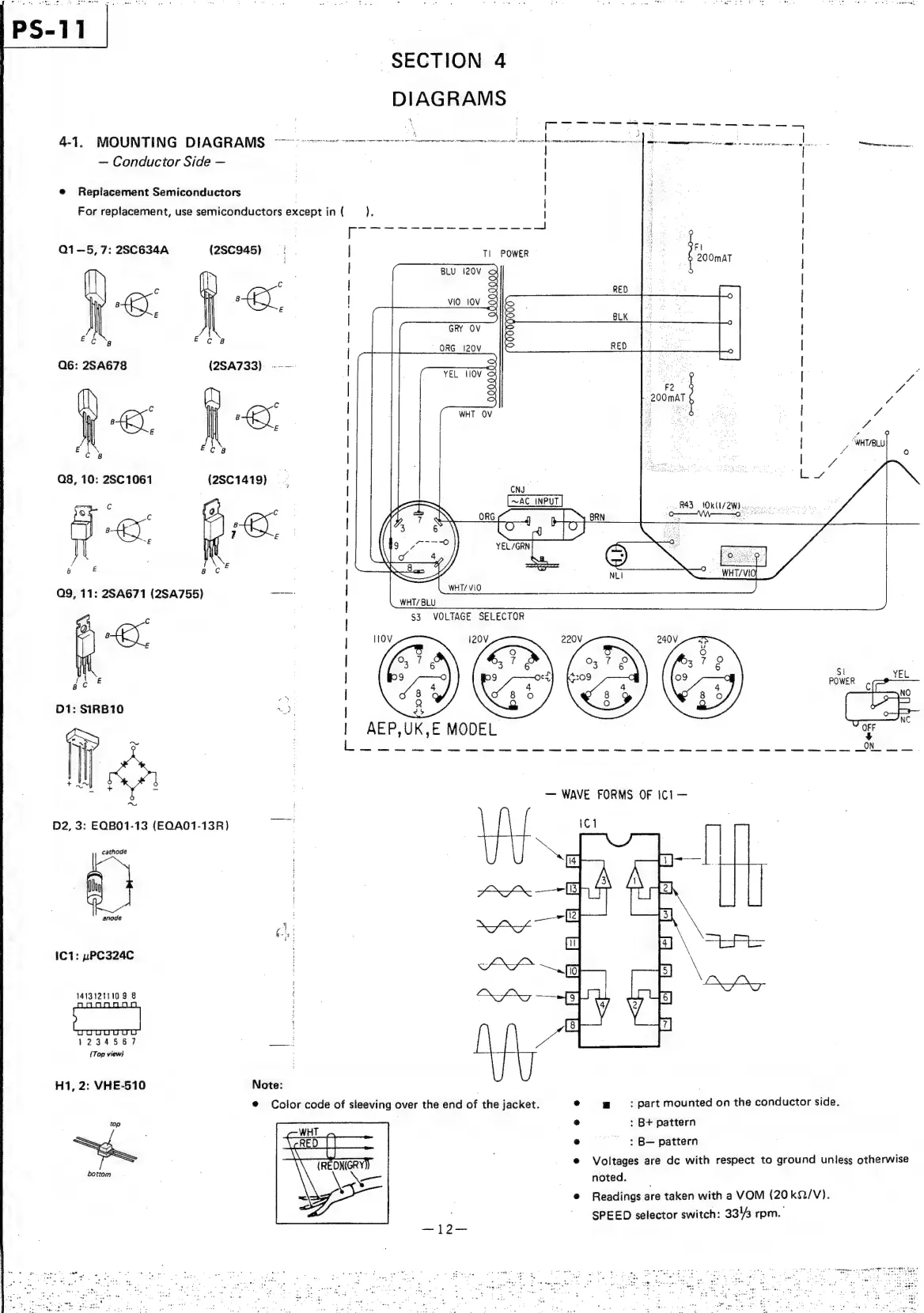 Sony PS-11 - Section 4: Diagrams; Mounting Diagrams; Wave Forms of IC1