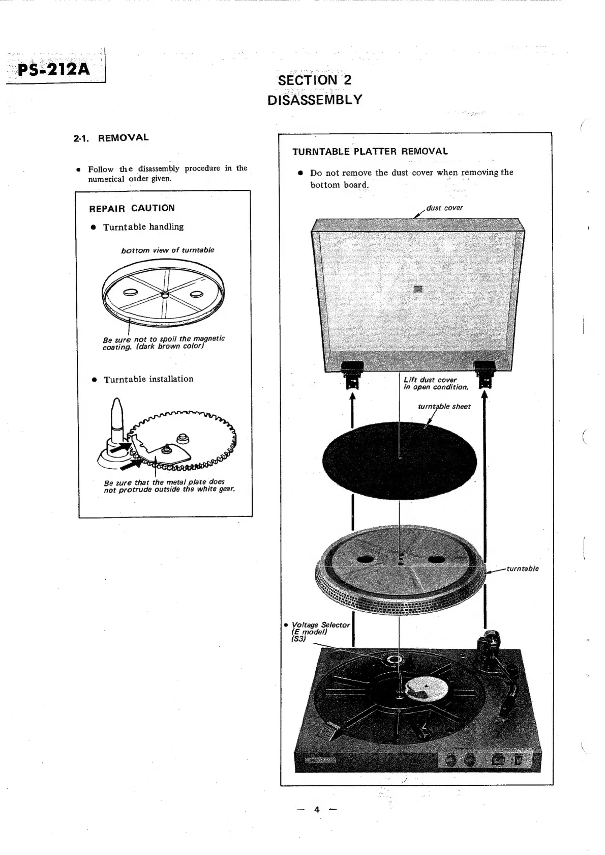 Sony PS-212A - Section 2 Disassembly; Removal Procedures and Cautions