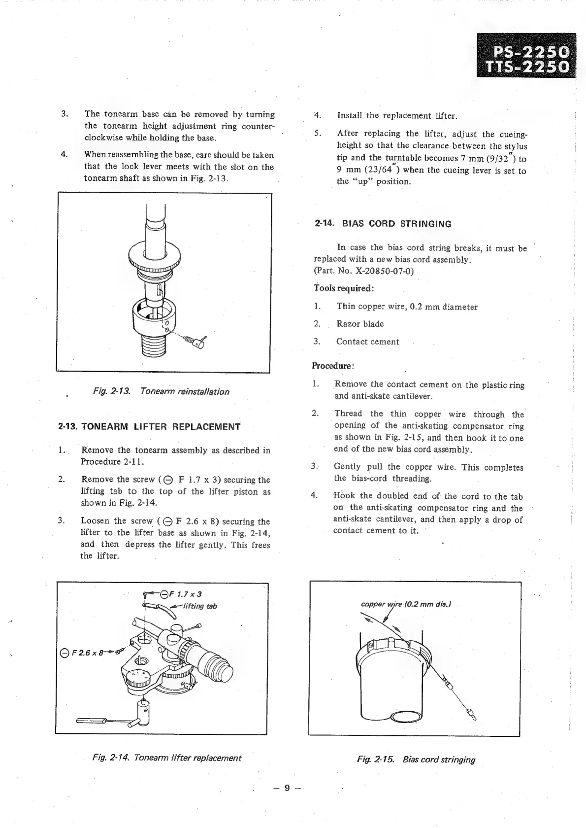 Sony PS-2250 - Tonearm Base Removal; Tonearm Lifter Replacement; Bias Cord Stringing Procedure