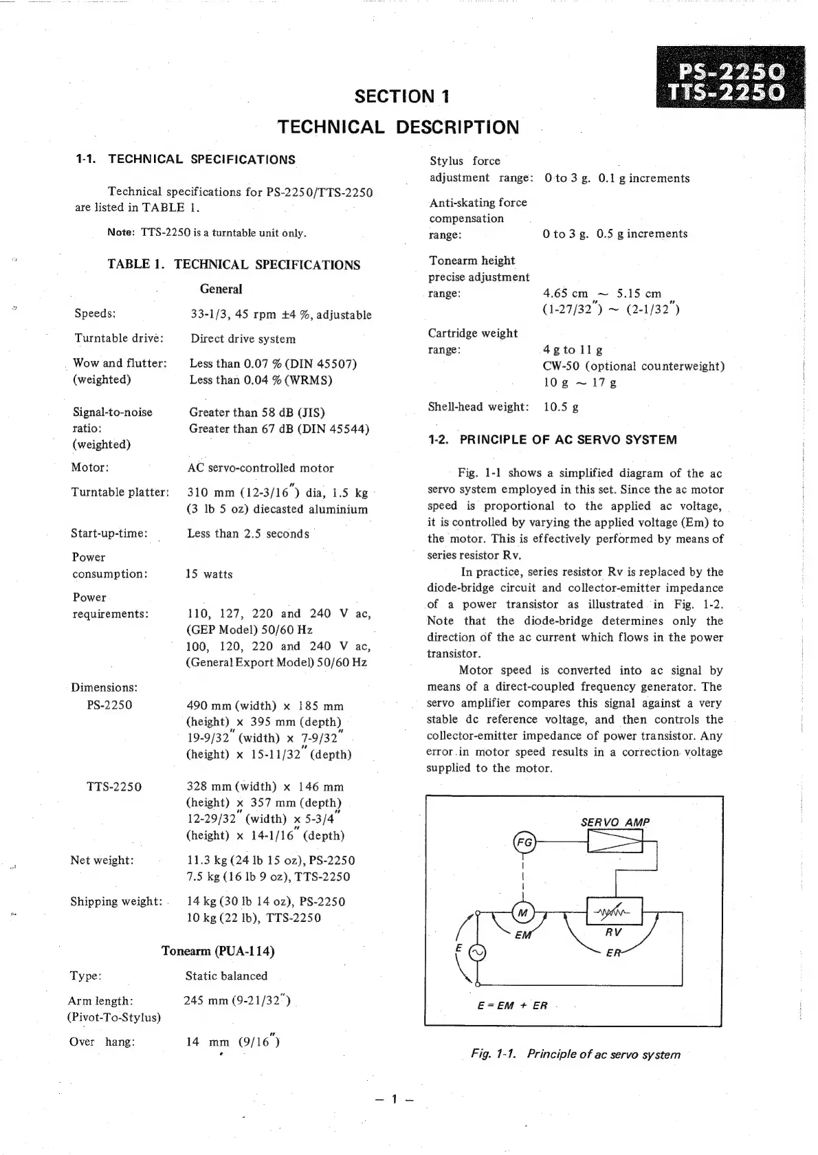 Sony PS-2250 - Technical Description; Technical Specifications; AC Servo System Principle