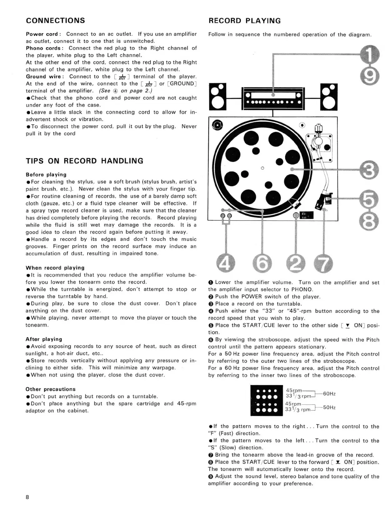 Sony PS-4750 - CONNECTIONS; RECORD PLAYING