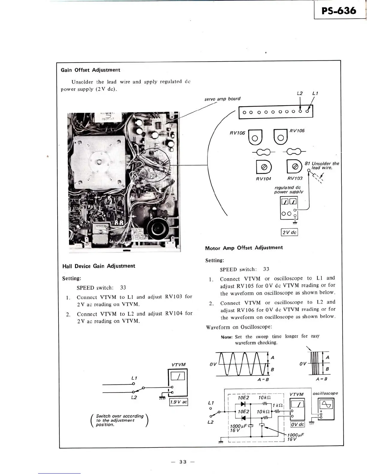 Sony PS-636 - Gain Offset Adjustment; Hall Device Gain Adjustment; Motor Amp Offset Adjustment