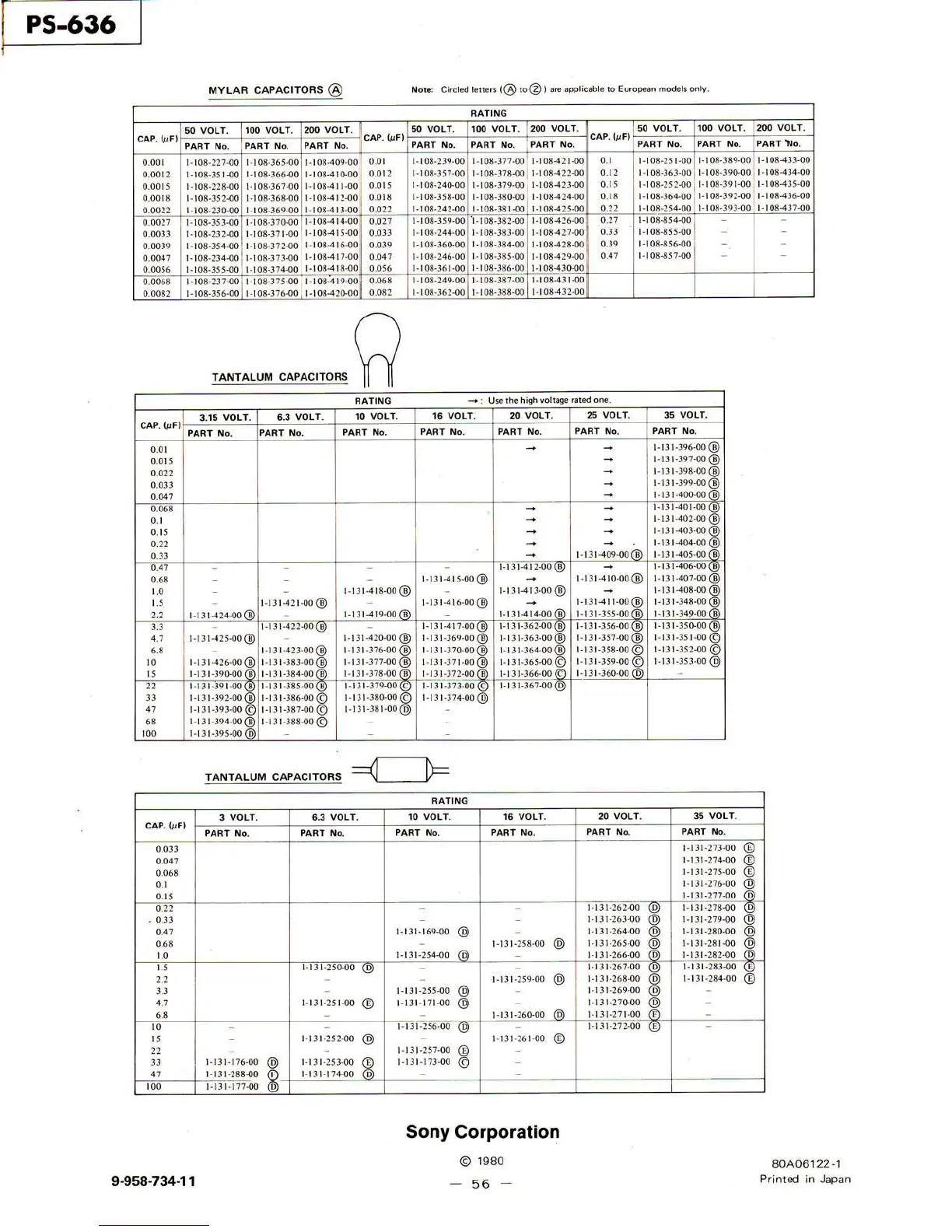 Sony PS-636 - Mylar Capacitors; Tantalum Capacitors