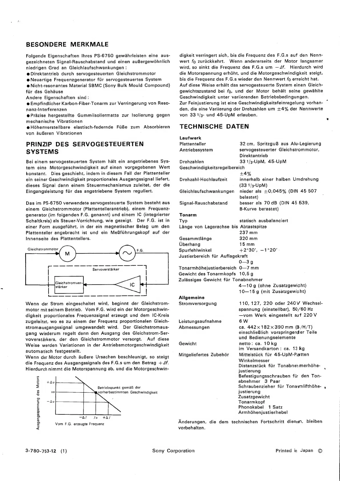 Sony PS-6750 - Besondere Merkmale; Prinzip des Servogesteuerten; Systems