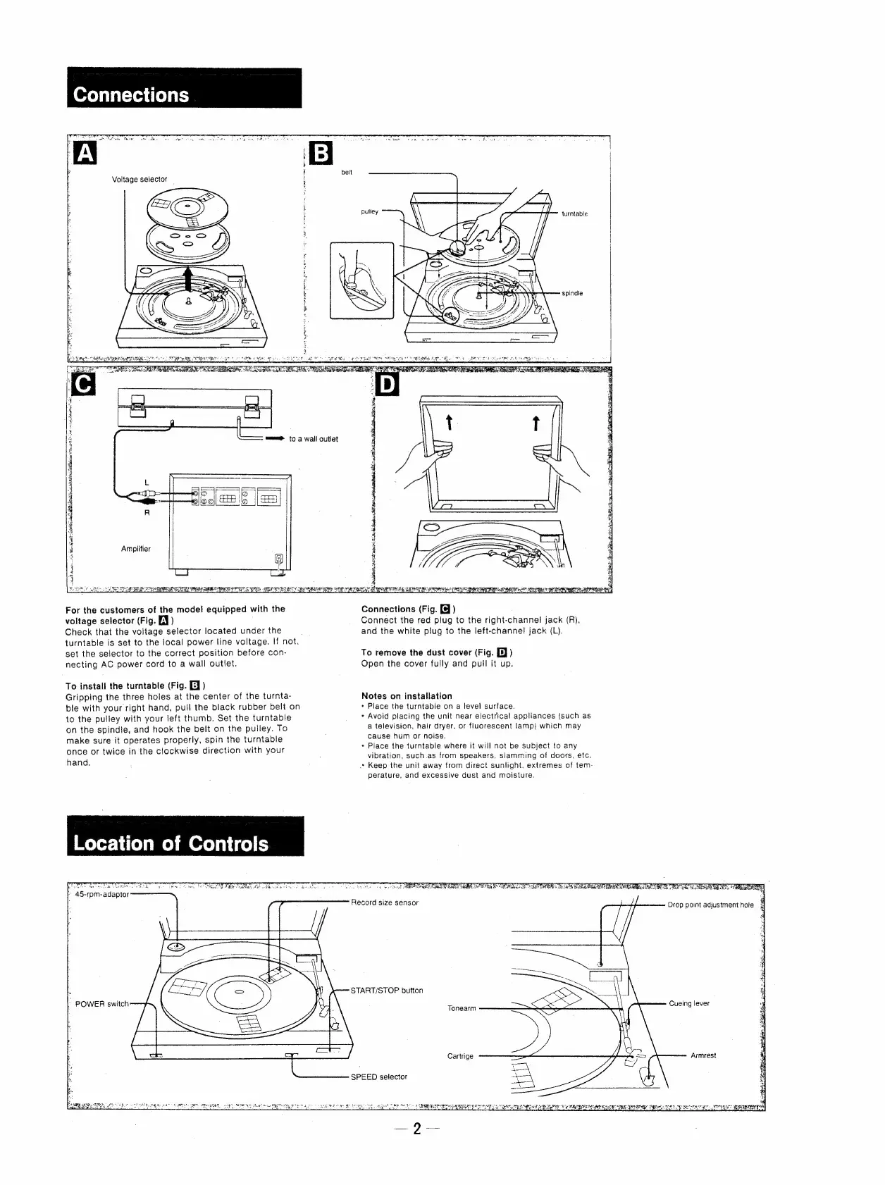 Sony PS-D707H - System Connections and Setup; Voltage Selector Adjustment; Turntable Installation; Audio Output Connections