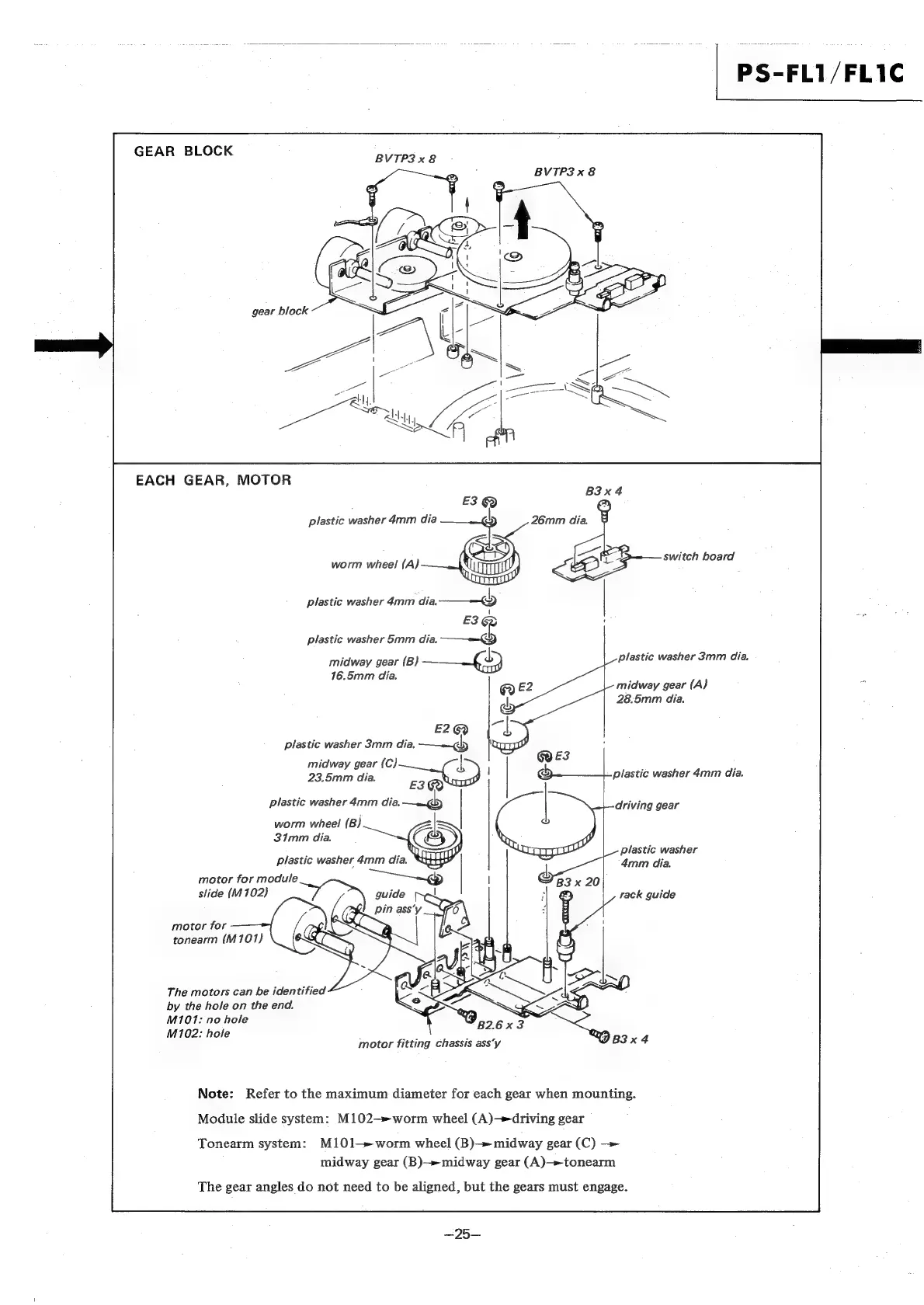 Sony PS-FL1 - Gear Block and Motor Details; Gear and Motor Identification Notes