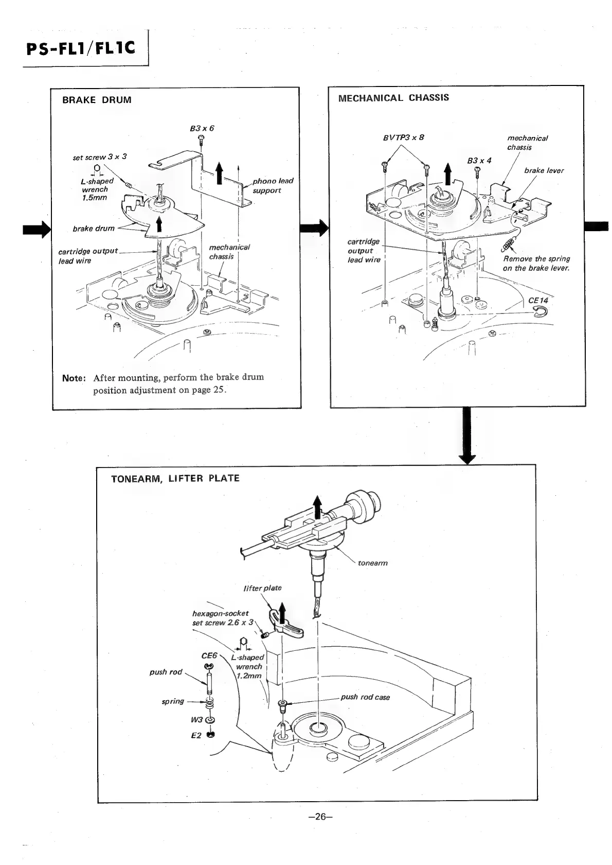 Sony PS-FL1 - Brake Drum Assembly; Mechanical Chassis and Tonearm;Lifter Plate