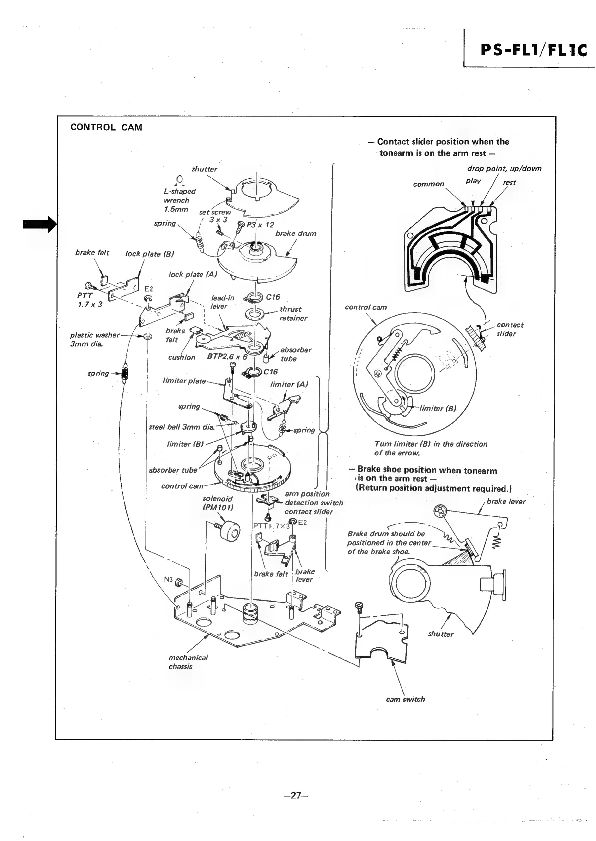 Sony PS-FL1 - Control Cam Operation; Contact Slider Positions; Brake Shoe Position