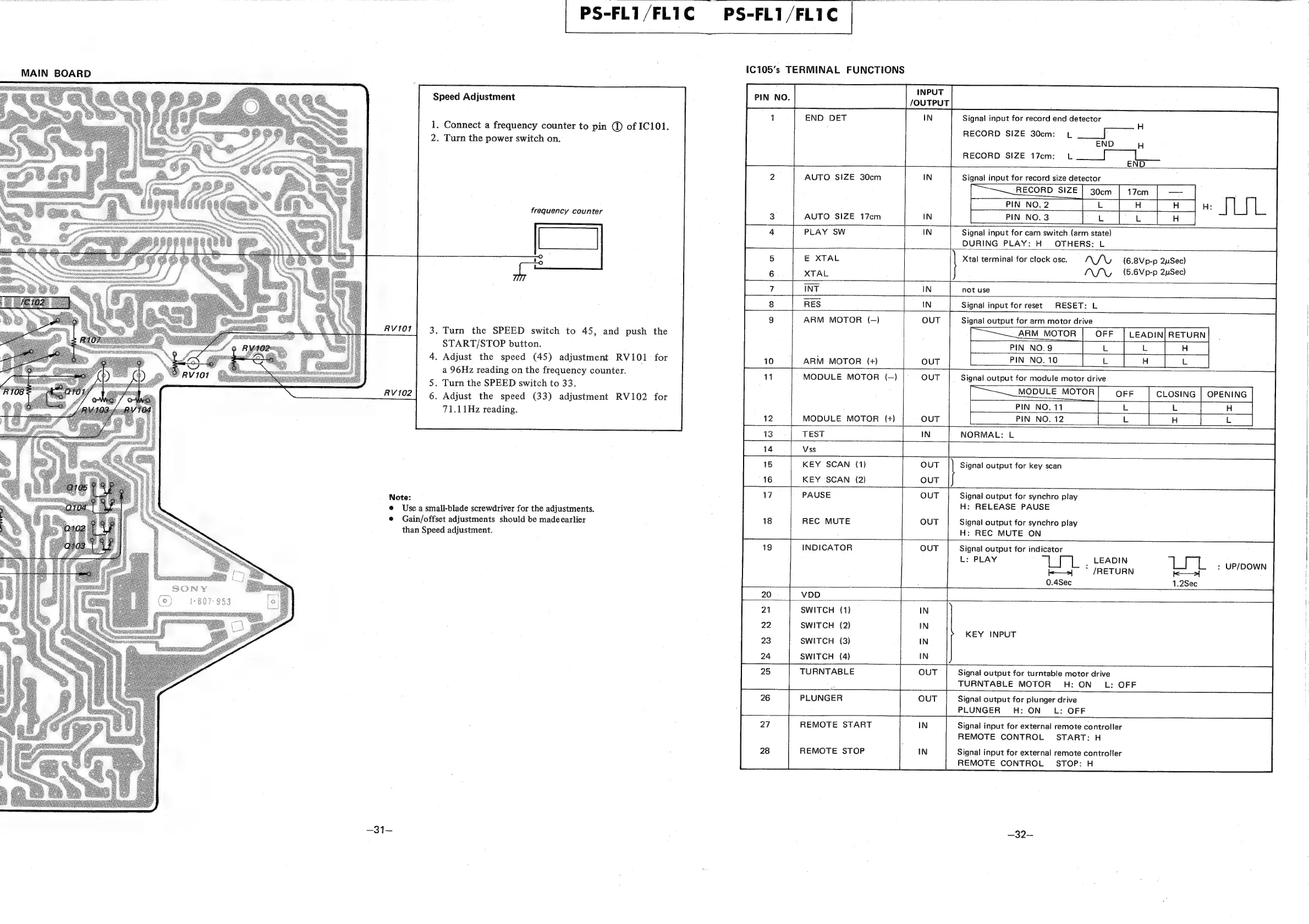 Sony PS-FL1 - Main Board Speed Adjustment; IC105 Terminal Functions