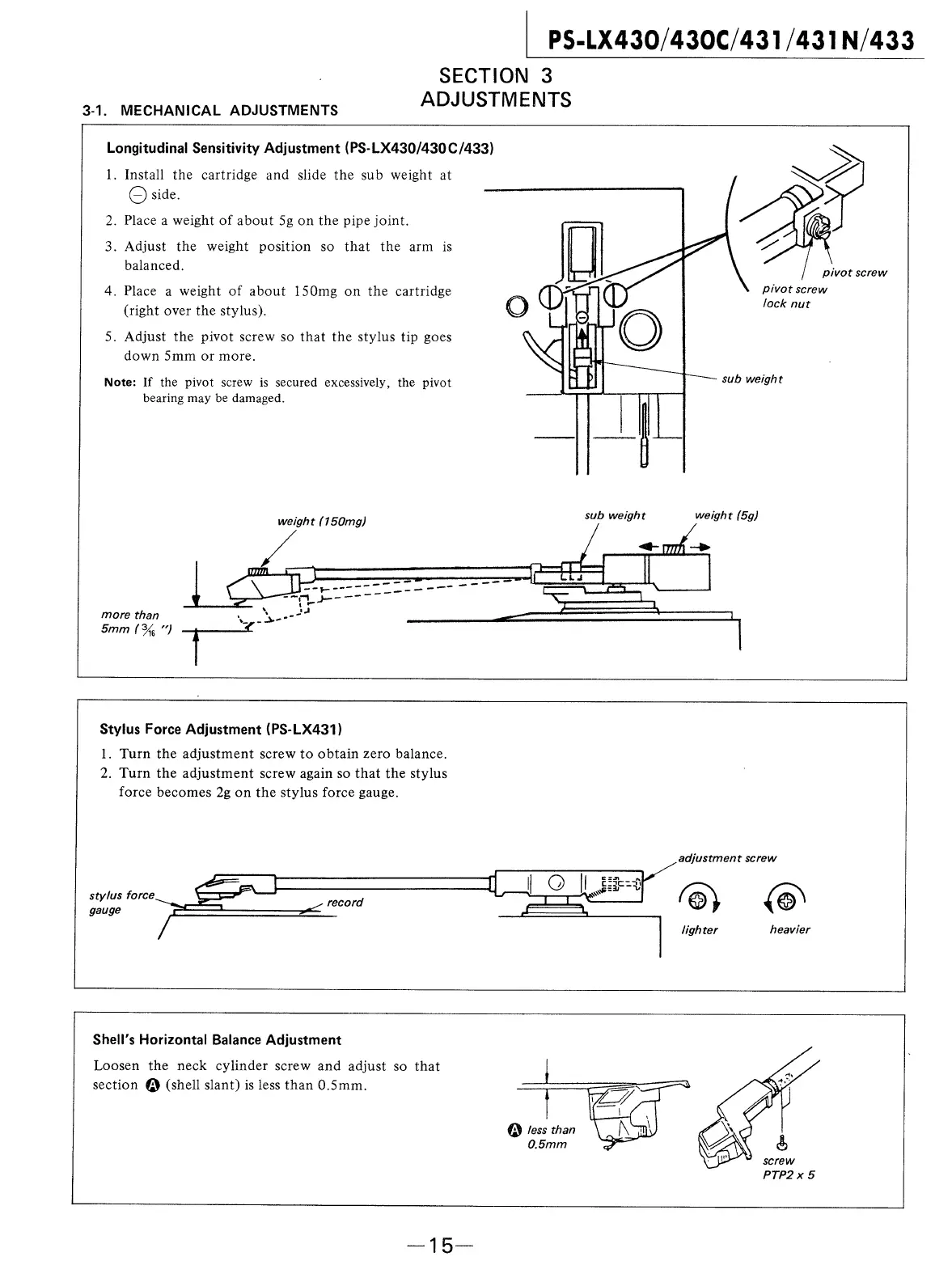 Sony PS-LX430 - Tone Arm Balance and Stylus Force