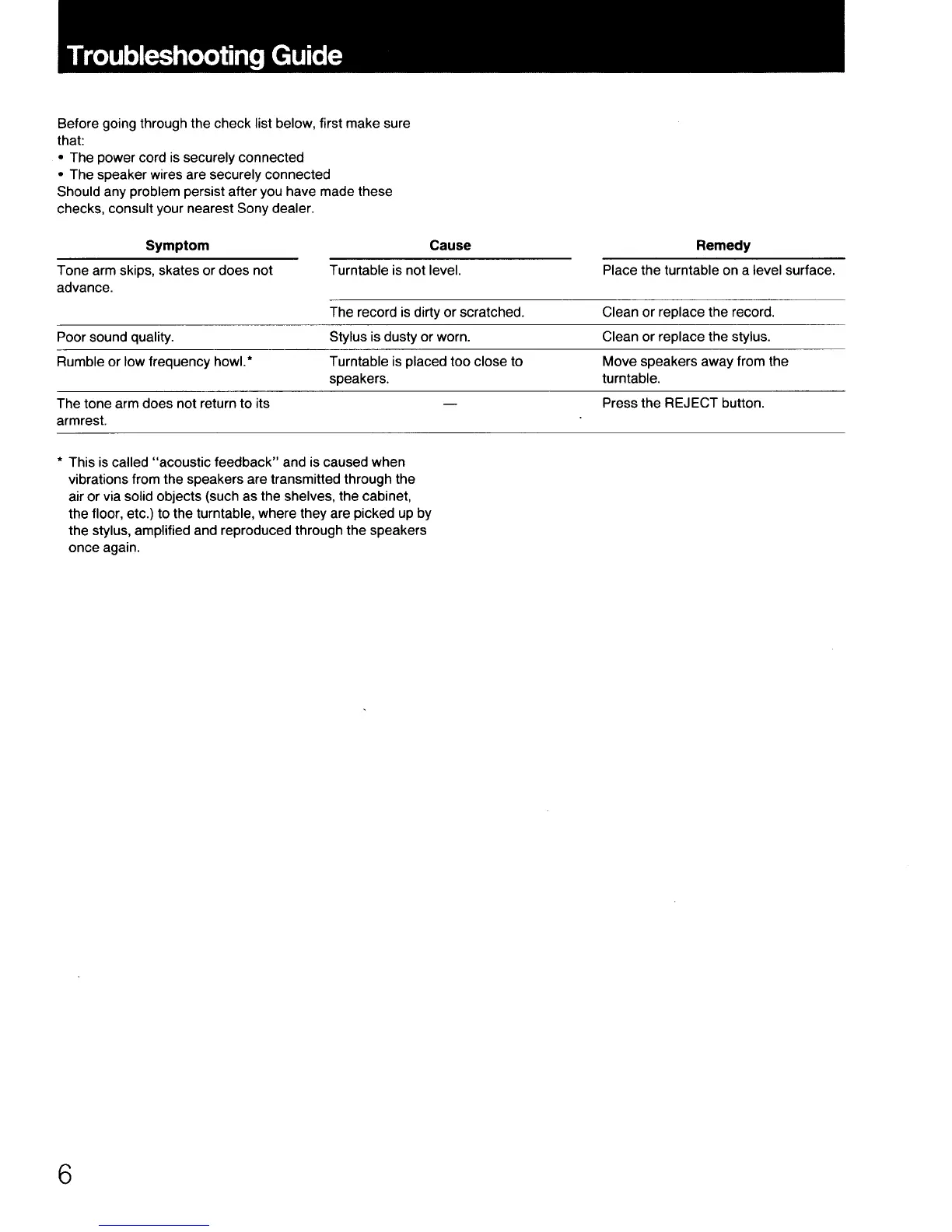 Sony PS-LX49 - Troubleshooting Guide
