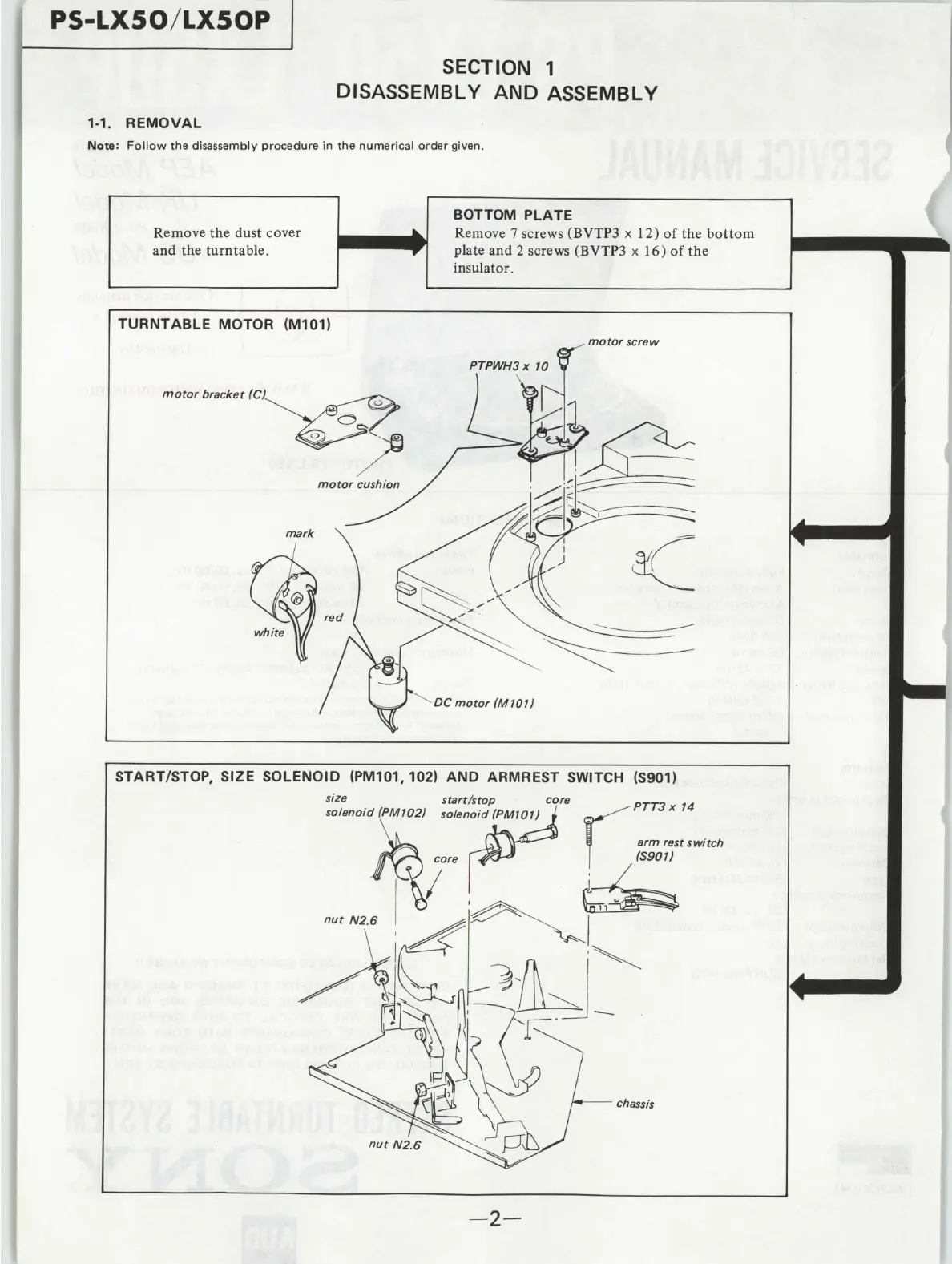 Sony PS-LX50 - SECTION 1 DISASSEMBLY AND ASSEMBLY; Disassembly: Component Removal