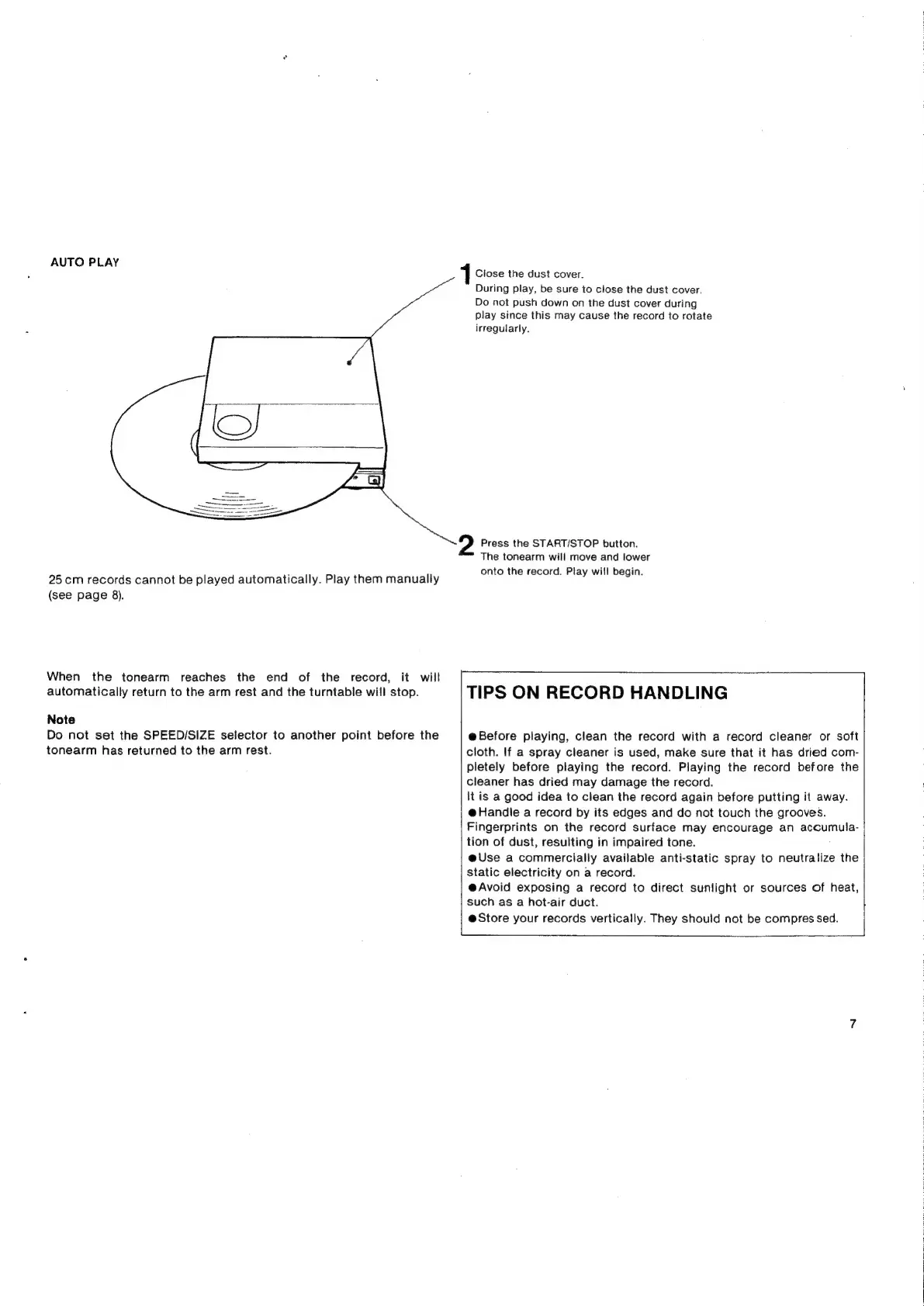 Sony PS-Q7 - AUTO PLAY; TIPS ON RECORD HANDLING
