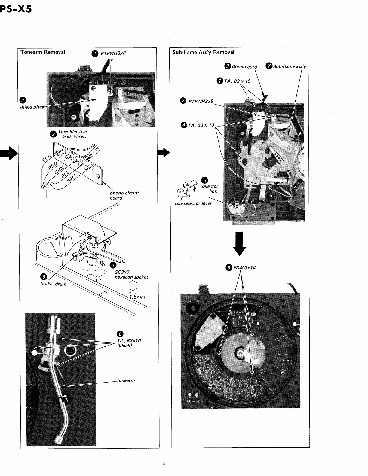 Sony PS-X5 - Tonearm and Sub-flame Assembly Removal