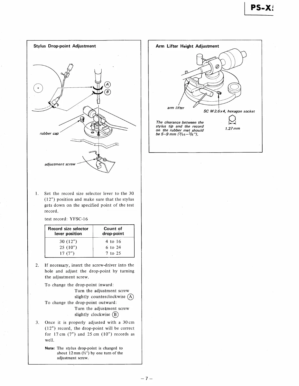 Sony PS-X5 - Mechanical Adjustments: Stylus Drop-point and Arm Lifter Height