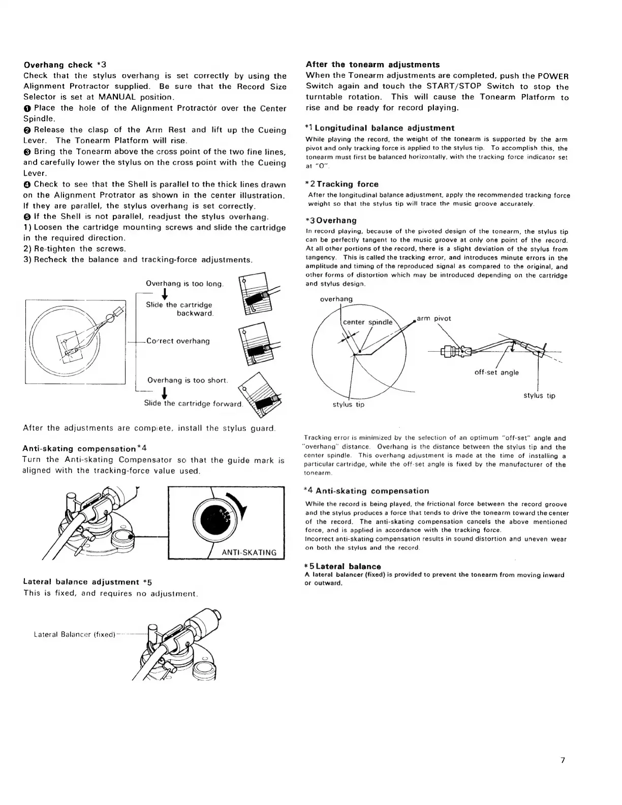 Sony PS-X6 - Overhang Check; Anti-skating Compensation; Lateral Balance Adjustment