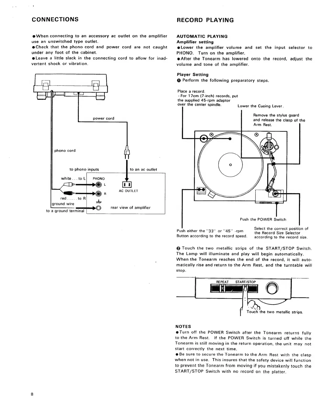 Sony PS-X6 - Connections; Record Playing; Automatic Playing; Player Setting