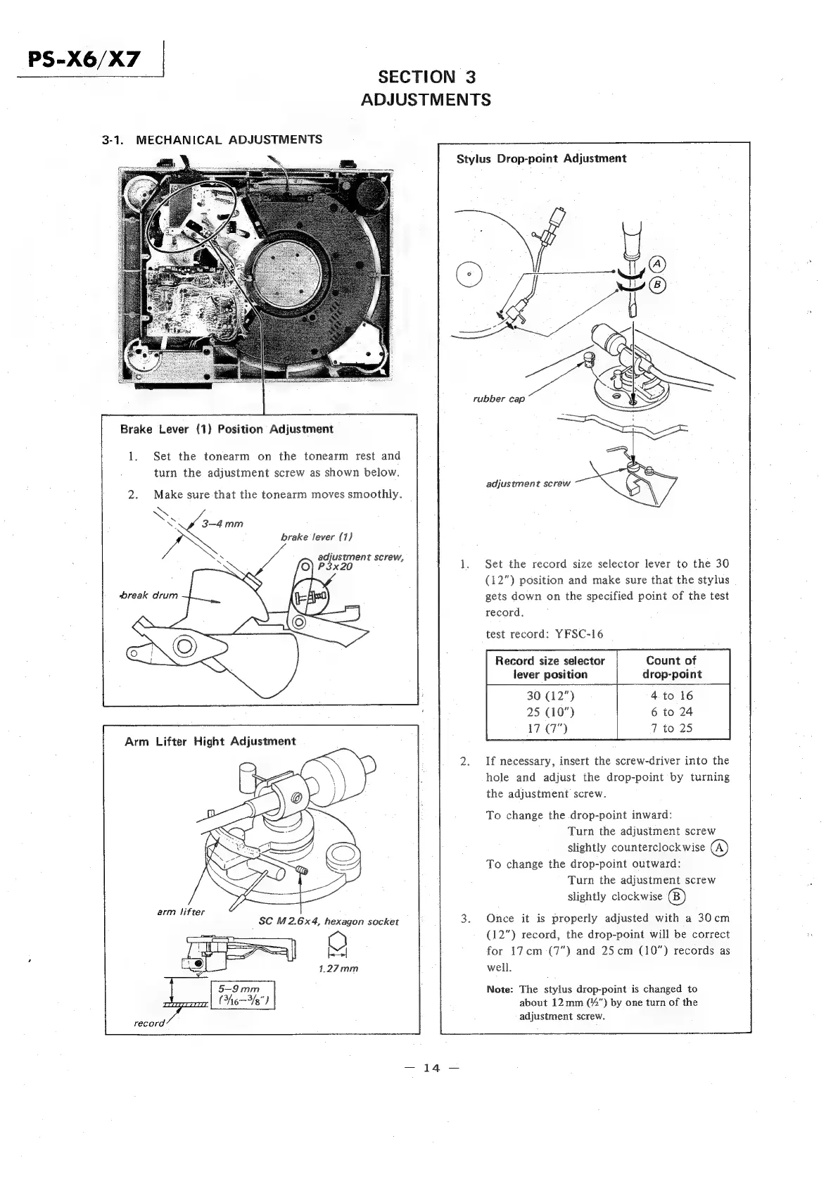 Sony PS-X7 - SECTION 3 ADJUSTMENTS; 3-1. MECHANICAL ADJUSTMENTS