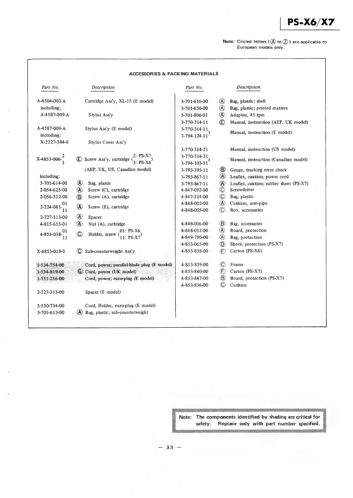 Sony PS-X7 - ACCESSORIES & PACKING MATERIALS