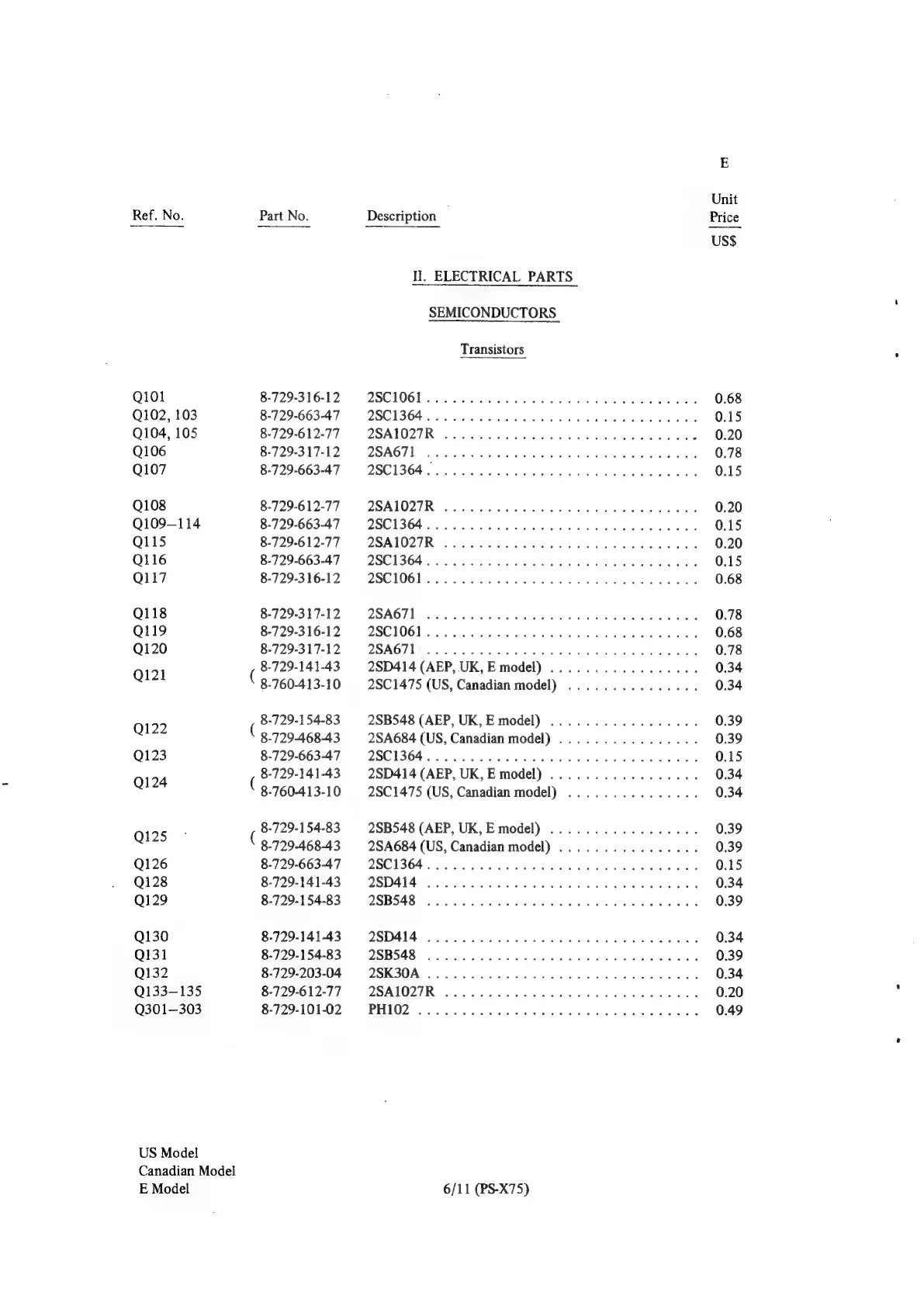 Sony PS-X75 - Electrical Parts List - Semiconductors; Transistor Identification; Diode and IC Identification