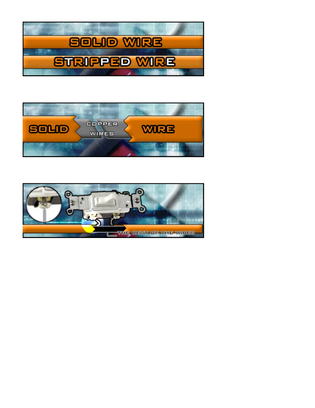 ends of the solid orange wire you have cut in half. Now after you strip the solid orange wire you