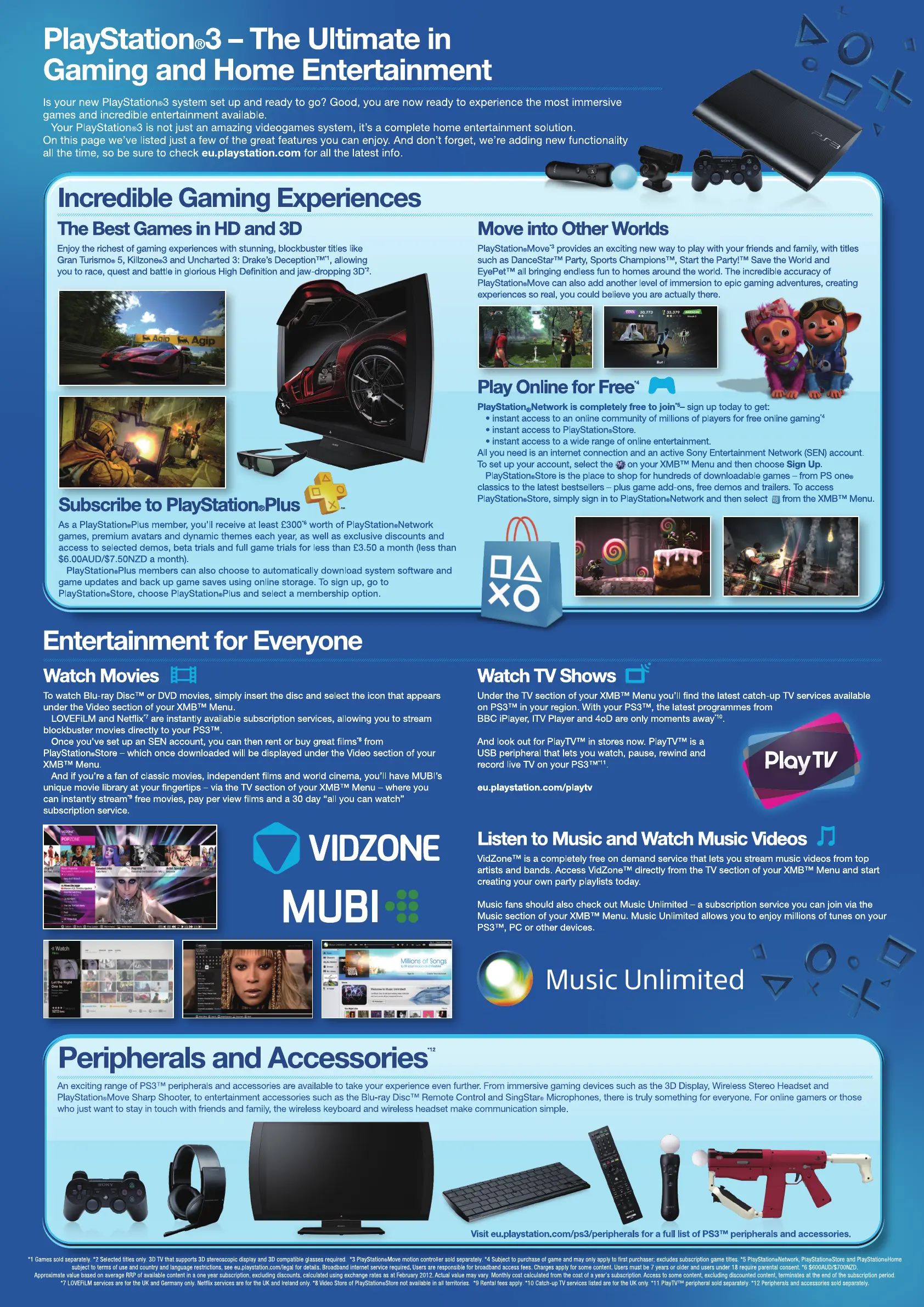 Sony PS3 - PlayStation3 Entertainment Features; Immersive Gaming Experiences; Home Entertainment Options; Peripherals and Accessories
