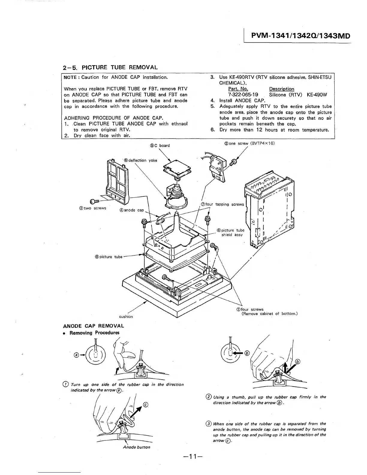 When you replace PICTURE TUBE or FBT, remove RTV