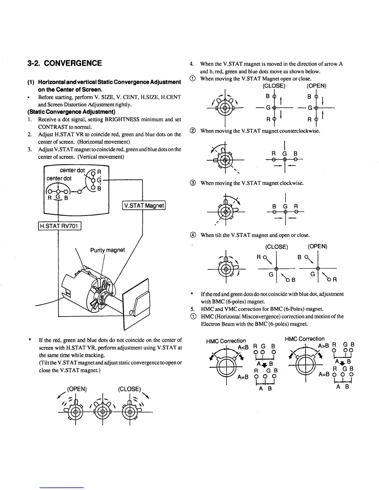 Y .ST AT magnet and adjust static convergence to open or