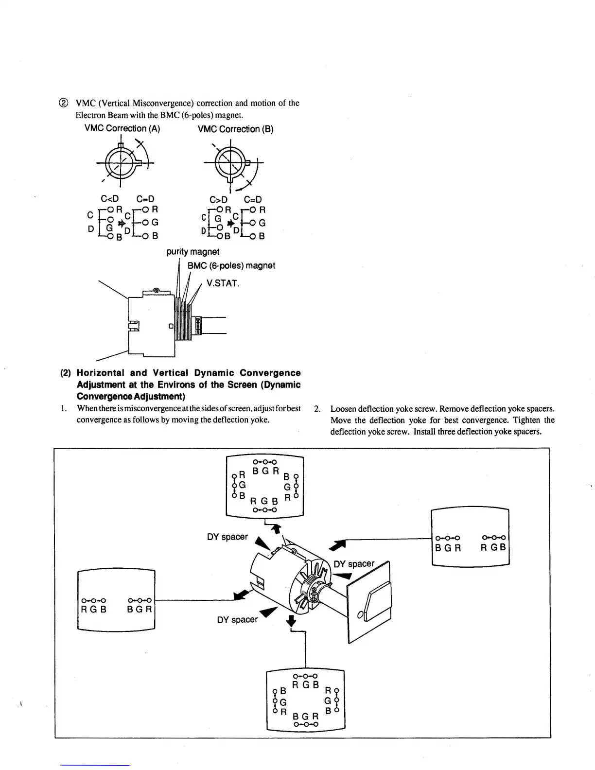convergence as follows by moving the deflection yoke.