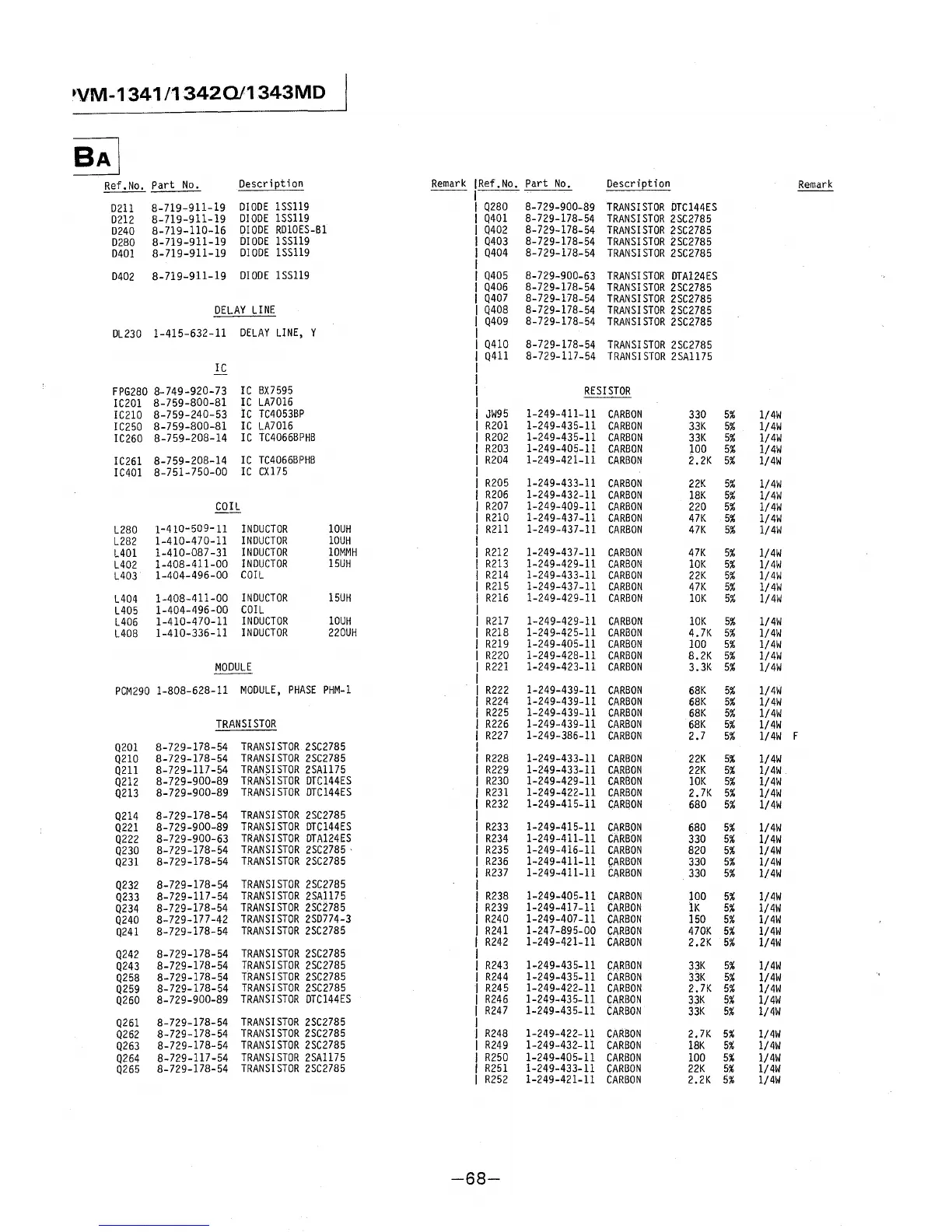 TRANSISTOR 2SC2785 R241 l-247-895-00 CARBON 470K