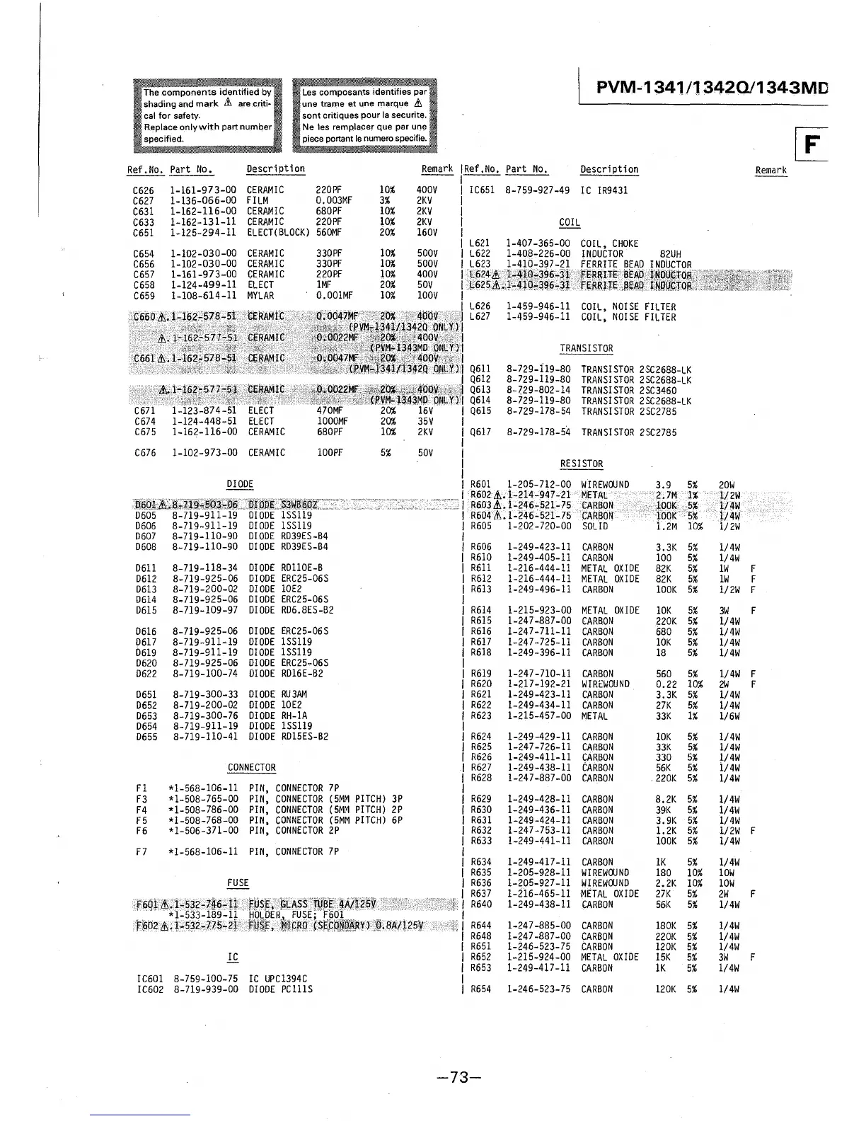 1-162-116-00 CERAMIC 680PF 10% 2KV I Q617 8-729-178-54 TRANSISTOR 2SC2785