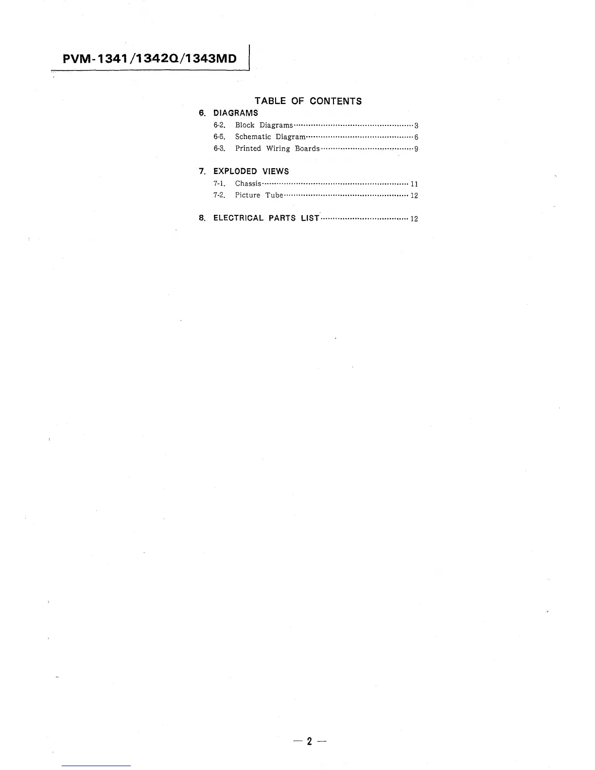 8. ELECTRICAL PARTS LIST .................................... 12