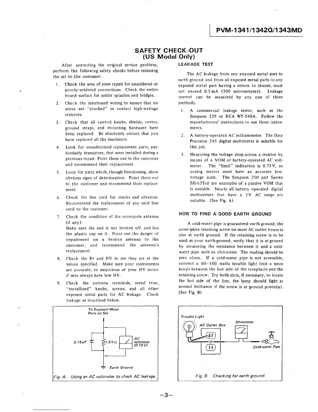 Fig. A. Using an AC voltmeter to check AC leakage.