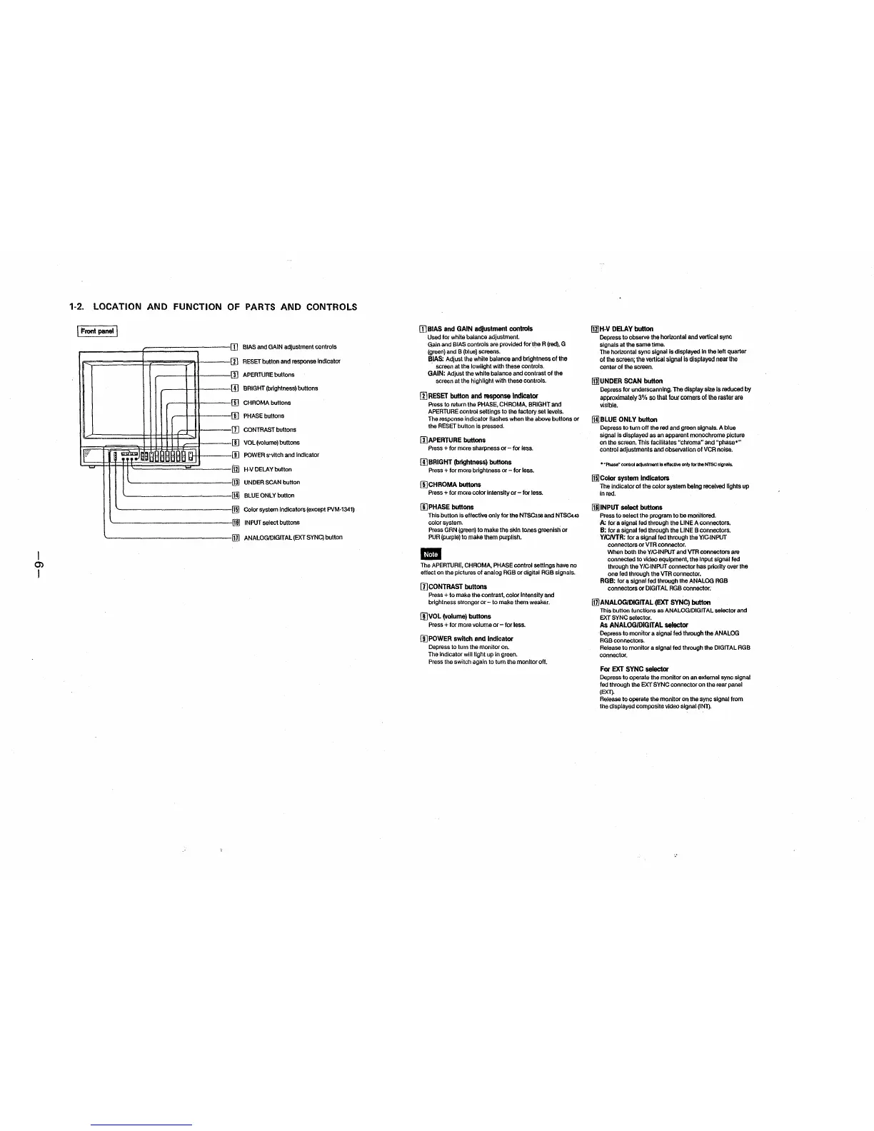 1-2. LOCATION AND FUNCTION OF PARTS AND CONTROLS