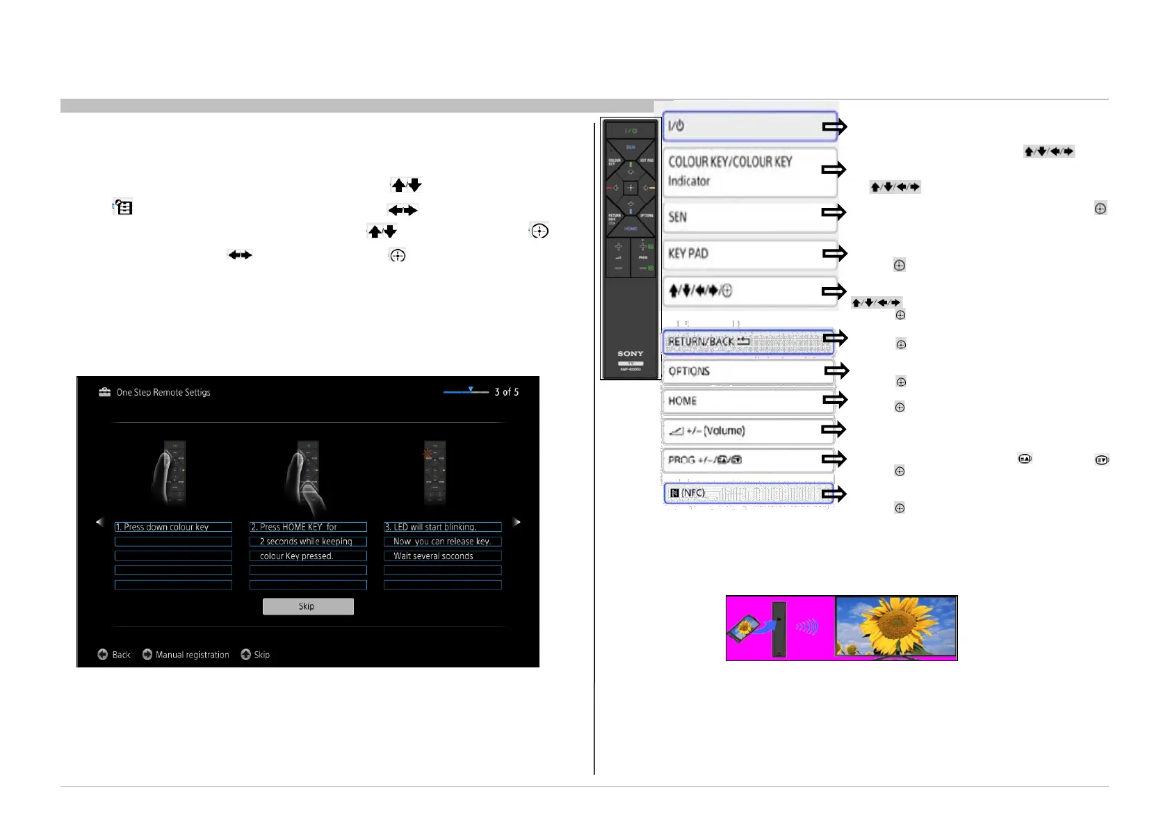 7. Press the COLOUR KEY and HOME buttons on the One-touch Remote Control