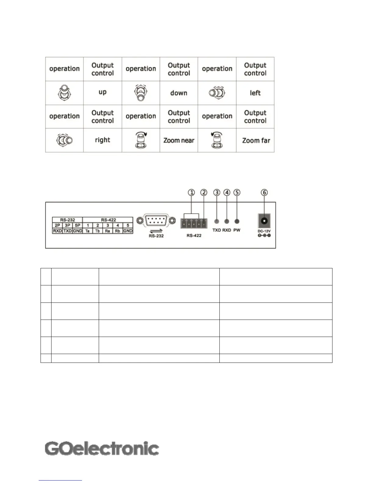 1 RS-422 Control command output terminal: