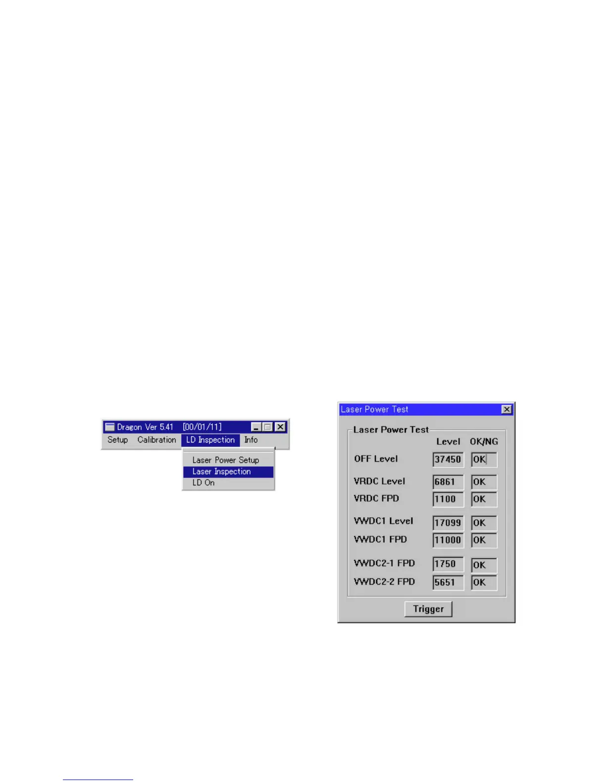 2. Select “Laser Inspection” on “LD Inspection” pull-down menu, then “Laser Power Test” window is open.
